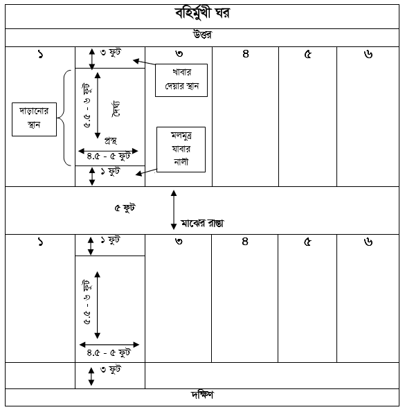 প্রাণীর জন্য ২০ বর্গফুট জায়গা ধরে ঘর নির্মাণ করতে হবে।